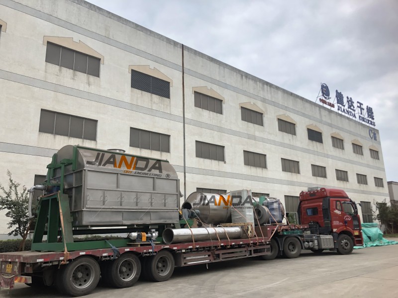 近日,健達(dá)滾筒刮板干燥設(shè)備經(jīng)最后的出廠檢驗(yàn)后,順利發(fā)出。滾筒刮板干燥機(jī)是一種內(nèi)加熱傳導(dǎo)型轉(zhuǎn)動(dòng)干燥設(shè)備,可分為兩種形式:?jiǎn)瓮病㈦p筒干燥機(jī),另也可按操作壓力分常壓和減壓兩種形式。
